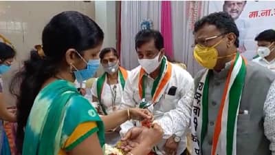 बदलापूर (ठाणे) : कोरोना काळात अनेकांना जवळची माणसं गमावली. काही घरांमध्ये घराच्या कर्त्या पुरुषाचं निधन झालं. या संकटात घरातील कर्ता पुरुष गमावलेल्या महिलांच्या चेहऱ्यावर मायेचं प्रेमळ हास्य निर्माण व्हावं यासाठी राष्ट्रवादी काँग्रेसने रक्षाबंधनाच्या निमित्ताने स्तुत्य उपक्रमाचं आयोजन केलं. या कार्यक्रमाला अन्न आणि औषध प्रशासन मंत्री राजेंद्र शिंगणे हे देखील सहभागी झाले. त्यांनी कोरोनामुळे घरातील कर्ता पुरुष गमावलेल्या महिला आणि भगिनींसोबत रक्षाबंधनाचा सण साजरा केला.