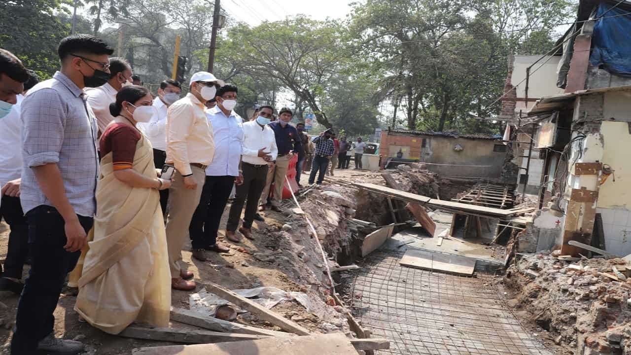 या रस्ता रुंदीकरणामध्ये बाधित होणारी बांधकामे निष्कासनाची कारवाई सुरु असून जवळपास 90 टक्के काम पूर्ण झाले आहे. तर जागा संपादनाचे काम 80 टक्के पूर्ण झाले आहे. सद्यस्थितीत रुंदीकरण व काँक्रीटीकरणाचे काम सुरु असून आज महापालिका आयुक्त डॉ. विपिन शर्मा यांनी या रस्त्याची पाहणी केली.