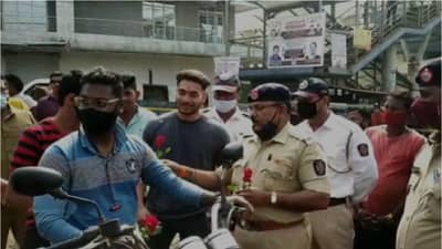 बदलापुरात शहरात आज वाहतूक पोलिसांचं एक वेगळं रूप पाहायला मिळालं. याला निमित्त होतं ते “नो चलान डे” चं. बदलापूरच्या गांधी चौक आणि स्टेशन परिसरात आज सकाळपासून वाहतूक पोलीस बंदोबस्तावर होते. नेहमीप्रमाणे एखादा नियम मोडणारा वाहनचालक दिसला की त्याला बाजूला घेतलं जात होतं. मात्र त्याच्याकडून दंड घेतला जात नव्हता. तर चक्क गुलाबाचं फुल देऊन त्याच्यासोबत फोटोसेशन केलं जात होतं. तसेच पुढच्या वेळी चूक करू नका, अशी गोड समज दिली जात होती.