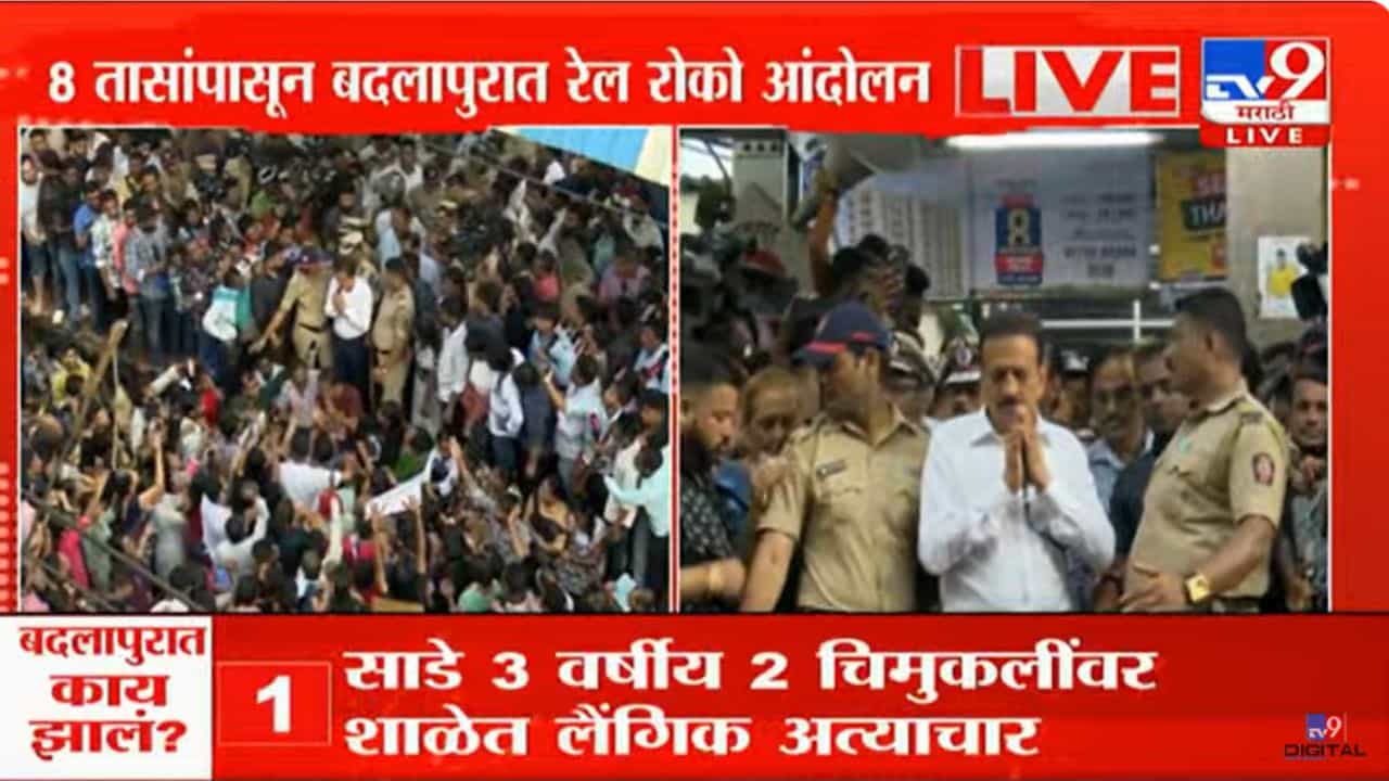 बदलापूरच्या नामांकीत शाळेत एका सफाई कर्मचाऱ्याने दोन साडेतीन वर्षांच्या चिमुकलींवर लैंगिक अत्याचार केला. संबंधित घटना या 13 आणि 14 ऑगस्टला घडल्या. या घटनेप्रकरणी पोलिसांनी सुरुवातीला गुन्हा दाखल करुन घेण्यास दिरंगाई केल्याचा आरोप केला जातोय. या प्रकरणात मनसेच्या पदाधिकाऱ्यांनी हस्तक्षेप केल्यानंतर पोलिसांनी गुन्हा दाखल केला. या घटनेमुळे संपूर्ण बदलापुरात खळबळ उडाली आहे. या घटनेचा निषेध व्यक्त करण्यासाठी बदलापूरच्या नागरिकांनी आज बदलापूर बंदची हाक दिली. यानंतर आज सकाळी 9 वाजता बदलापूरकर थेट रेल्वे स्थानकावर दाखल झाले. त्यांनी बदलापूर रेल्वे स्थानकाचं संपूर्ण कामकाज बंद पाडलं. शेकडो नागरिकांचा जमाव रेल्वे स्थानकावर आला. आरोपीला आमच्या हातात द्या, त्याला आम्ही शिक्षा करु किंवा त्याला तातडीने फाशीची शिक्षा द्या, अशी भूमिका आंदोलकांची आहे. आंदोलकांचा रोष पाहता मंत्री गिरीश महाजन बदलापूर रेल्वे स्थानकावर दाखल झाले. त्यांनी सलग दोन तास बदलापूरकरांची मनधरणी करण्याचे प्रयत्न केले. पण त्यांना अपयश आलं.