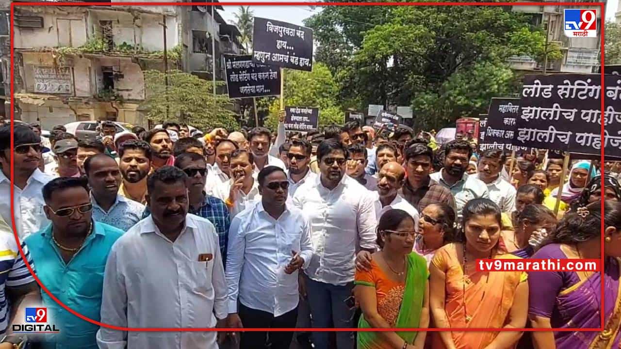 कल्याण : अंबरनाथ तालुक्यातील मलंगगड परिसरात गेल्या काही दिवसांपासून रात्रीच्या वेळी अघोषित लोडशेडिंग (Load Shedding) सुरू करण्यात आलं आहे. याविरोधात शनिवारी शिवसेनेनं कल्याणच्या तेजश्री या महावितरण कार्यालयावर मोर्चा (Morcha) काढला. शिवसेनेच्या नेतृत्त्वात निघालेल्या या मोर्चात मलंगगड परिसरातील शेकडो ग्रामस्थ सहभागी झाले होते. तर महिलांनीही मोर्चात उत्स्फूर्तपणे सहभाग घेतला. शिवसेनेचे स्थानिक नेते महेश गायकवाड, चैनू जाधव, राहुल पाटील, युवराज पाटील यांच्या नेतृत्वात हा मोर्चा काढण्यात आला. यानंतर महावितरणचे अधीक्षक अभियंता दीपक पाटील यांची शिवसेनेच्या शिष्टमंडळाने भेट घेतली. मात्र यावेळी पाटील यांच्या दालनातील लाईट, एसी, पंखे बंद करून त्यांच्याशी अंधारात चर्चा करण्यात आली. तसंच त्यांना लोडशेडिंगच्या परिस्थितीची जाणीव करून देण्यासाठी त्यांच्या दालनात शिवसेनेनं मेणबत्त्या पेटवत लोडशेडिंगचा प्रतिकात्मक निषेध केला. (Shiv Sena agitation against load shedding in Kalyan Malanggad area)