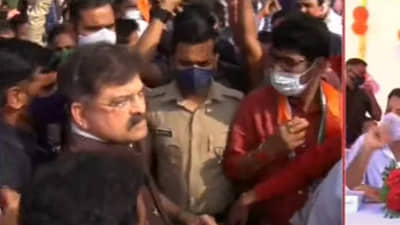 राष्ट्रवादीच्या कार्यकत्यांनी बॅनर लावल्यानंतर मोठा हायव्होल्टेज ड्रामा सुरू झाला. काही वेळातच हा वाद फक्त बॅनरबाजीवर थांबला नाही तर थेट हमरातुमरीवर पोहोचला. यावेळी पाठपुरावा आम्ही केला आणि बॅनरबाजी तुमची हा दोन्हीकडील कार्यकर्त्यांचा समज होत. कार्यकर्ते तर एकमेकांना भिडलेच, मात्र नगरसेवकही मागे राहिले, यावेळी नगरसेवाकांमध्येही जोरदार बाचाबाची झाली. यावेळी शिवसेनेचे नगरसेवक उमेश पाटील आणि राष्ट्रवादीचे नगरसेवक महेश साळवी शाब्दिक चकमक देखील बघायला मिळाली.