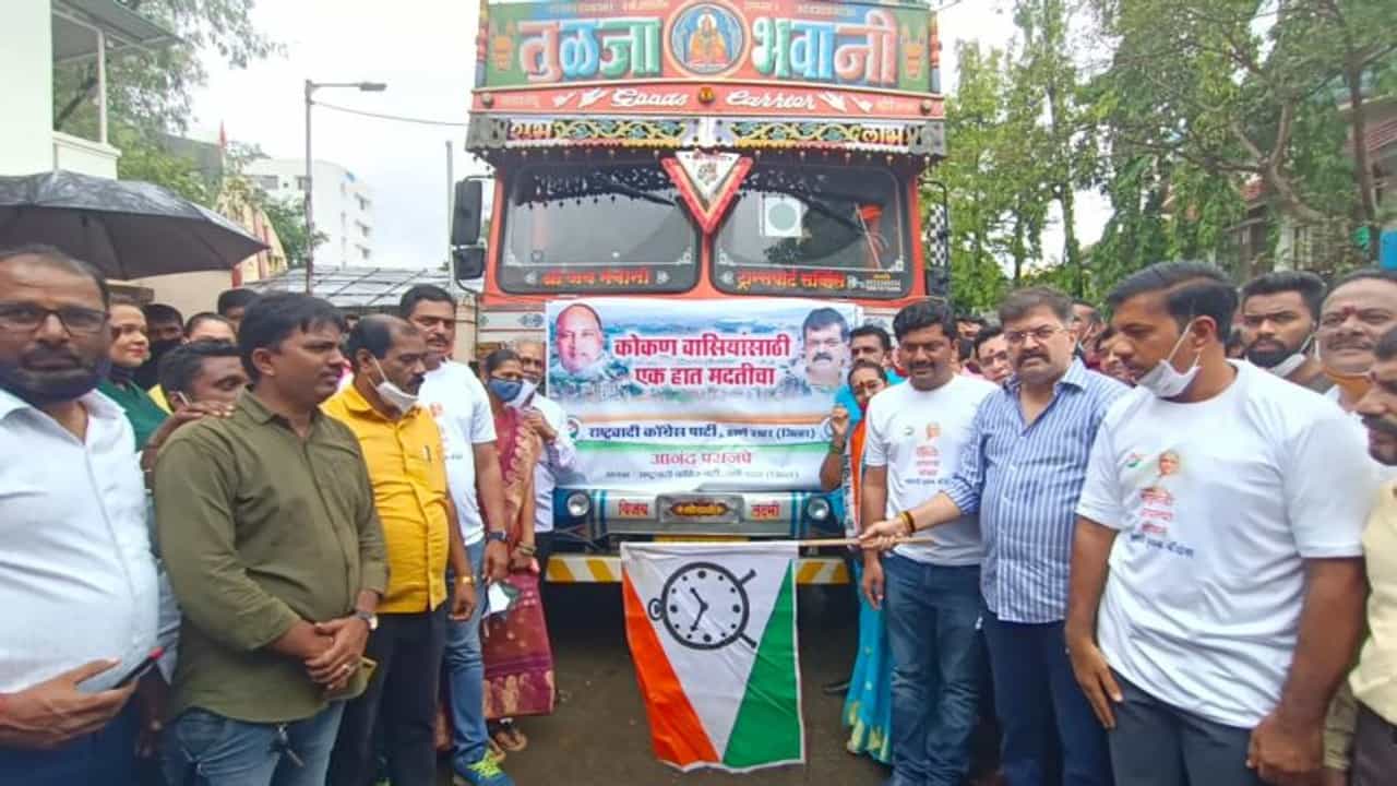 खाद्य पदार्थ ते माचिसचे बॉक्स, पूरग्रस्तांसाठी राष्ट्रवादीची मदत, ठाण्याहून पाच ट्रक कोकणच्या दिशेला रवाना