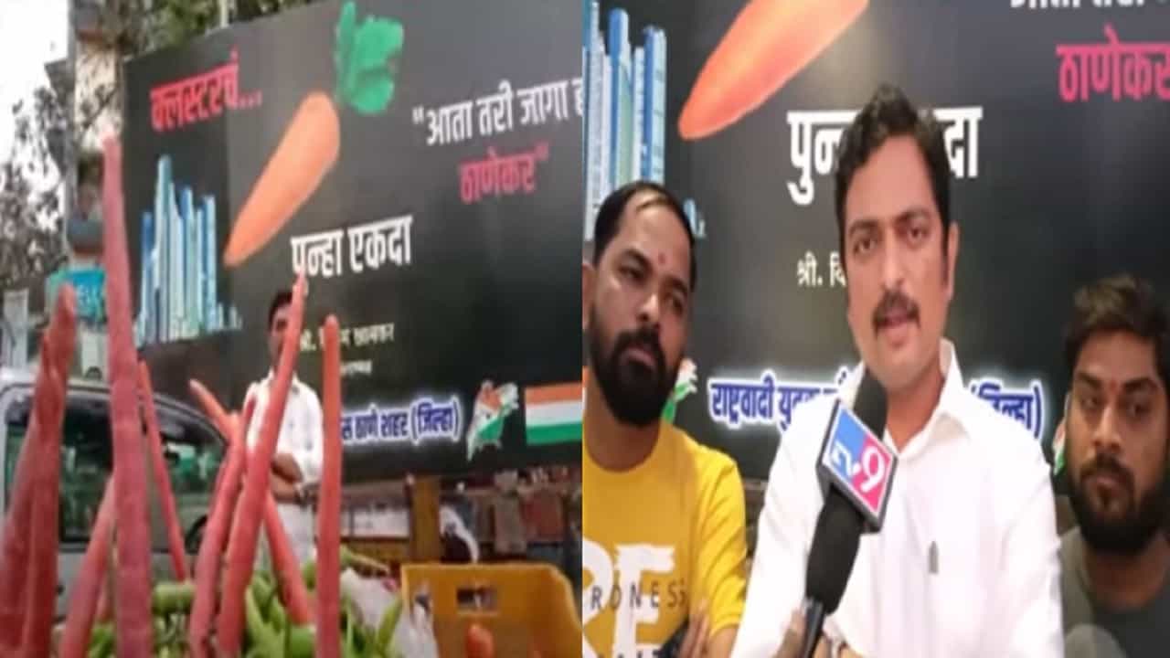 ठाणे महापालिकेच्या 2017 च्या निवडणुकीत क्लस्टरच्या मुद्यावरून सत्तेत आली मात्र अद्याप कोणतीही वीट रोवली नाही. पालकमंत्री मंत्री एकनाथ शिंदे यांनी सिडको आणि ठाणे महापालिका यामध्ये सामंजस्य करार करत मंत्री एकनाथ शिंदे यांच्या समवेत स्वाक्षऱ्या झाल्या होत्या आणि आता क्लस्टरचा मार्ग मोकळा झाला असून क्लस्टर होणार असा दावा सत्ताधारी शिवसेनेच्या वतीने करण्यात आला होता, याच पार्श्वभूमीवर राष्ट्रवादी युवक काँग्रेस जिल्हा अध्यक्ष विक्रम खामकर यांनी ‘क्लस्टर पुन्हा गाजर’ या आशयाचे बॅनर लावून अजून किती वर्षे क्लस्टर च्या मुद्यावरून निवडणूक लढवणार असा सवाल यावेळी खामकर यांनी उपस्थित केला.