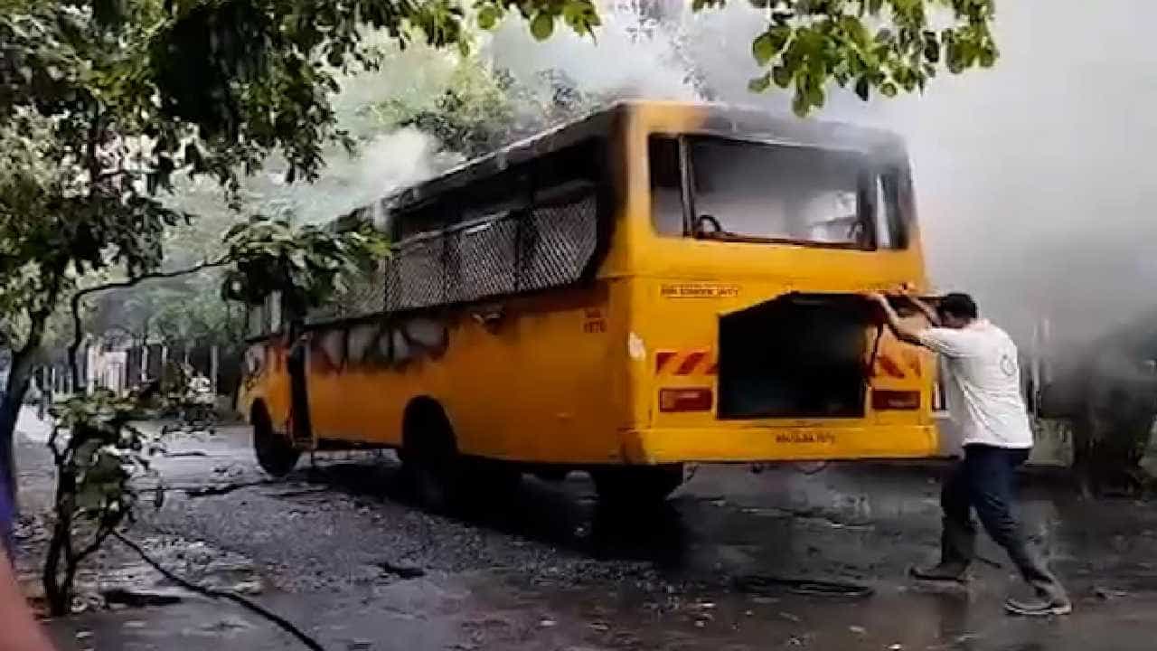 Virar Bus Fire : विरारमध्ये मुलांच्या शाळेच्या धावत्या बसला भीषण आग