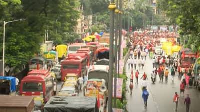 मराठा समाजाला ओबीसीमधून आरक्षण देण्यासाठी मनोज जरांगे पाटील हे मुंबईतील आझाद मैदानात उपोषणाला बसले आहेत. त्यांच्या उपोषणाचा आज दुसरा दिवस आहे. मात्र, काही मराठा आंदोलक हे आझाद मैदान सोडून चक्क मुंबई महापालिकेच्या समोर येऊन ठिय्या आंदोलन करत आहेत. यामुळे मोठी वाहतूककोडीं झाल्याचे बघायला मिळतंय. पोलिसांकडून आंदोलकांची समजूत काढण्याचा प्रयत्न केला जातोय. मराठा आंदोलनाच्या पार्श्वभूमीवर मुंबईत मोठी वाहतूककोडीं झाल्याचे सध्या बघायला मिळत आहे. आंदोलकांनी पूर्ण रस्ता चाम केला आहे.