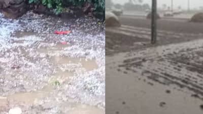 वाशिम हवामान खात्याने वर्तवलेल्या अंदाजानुसार, सलग चौथ्या दिवशीही वाशिम जिल्ह्यात वादळी वारासह विजेच्या कडकडाटात गारपीट झाल्याचं आज पुन्हा पाहायला मिळाले. त्यामुळे शेतकऱ्यांच्या चिंतेत अधिकची भर पडली आहे. भर उन्हाळ्यात अवकाळी पाऊस बरसात असल्याने उन्हाळी पिकासह फळबागांना या पावसाने अधिकचा फटका बसताना दिसतोय.