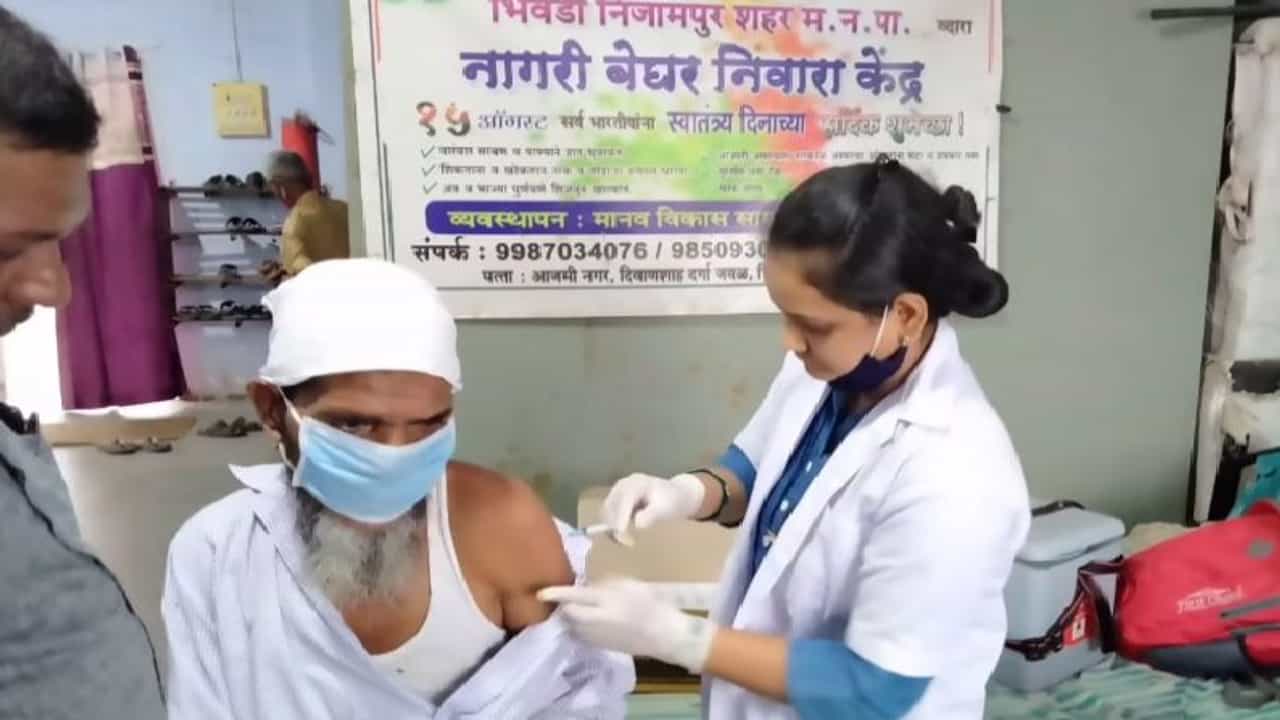 भिवंडीत रात्र निवारा केंद्रातील बेघरांचे लसीकरण करण्यात आलं. महानगरपालिका क्षेत्रात दिवानशाह दर्गा व बस स्थानक परिसरात दोन रात्र निवारा केंद्र आहेत. या केंद्रांच्या आश्रयास असलेल्या बेघर निराधार व्यक्तींचे लसीकरण होतं. (vaccination of homeless people Centre of bhiwandi)
