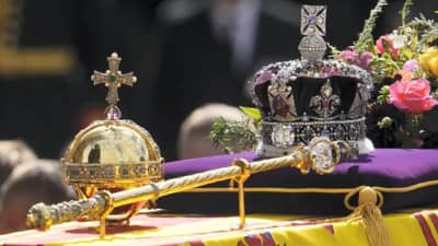 राणीच्या ताबूतवर सुंदर निलमनं जडलेला ताज ठेवलेला होता. दोन किलोपेक्षा जास्त वजनी इम्पिरीअल स्टेट क्राऊन कित्तेक वर्षांपासून या कुटुंबाची शान आहे.