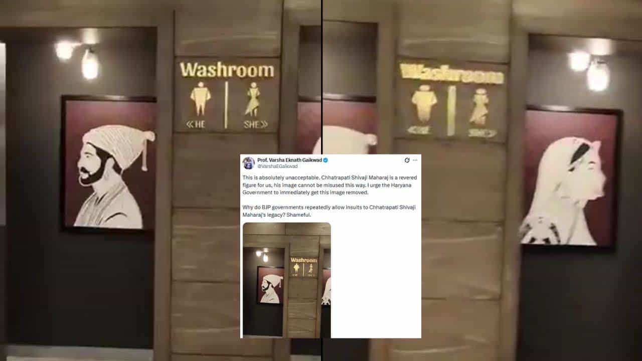 हरियाणातील सिकरी येथील रिसॉर्टमध्ये छत्रपती शिवाजी महाराज आणि राणी पद्मिनी यांच्या प्रतिमांचा अवमान झाल्याचा प्रकार समोर आला आहे. थेट रिसॉर्टमधील वॉशरूमच्या प्रवेशद्वारावर या महापुरुषांचे फोटो लावण्यात शिवभक्त आणि इतिहासप्रेमींमध्ये प्रचंड रोष निर्माण केला आहे. सध्या सोशल मीडियावर या रिसॉर्टच्या वॉशरुम बाहेरील फोटो तुफान व्हायरल झाले आहेत. या रिसॉर्टच्या वॉशरुममधील व्हिडीओ काँग्रेसच्या नेत्या वर्षा गायकवाड यांनी सोशल मीडियावर पोस्ट केला आहे.