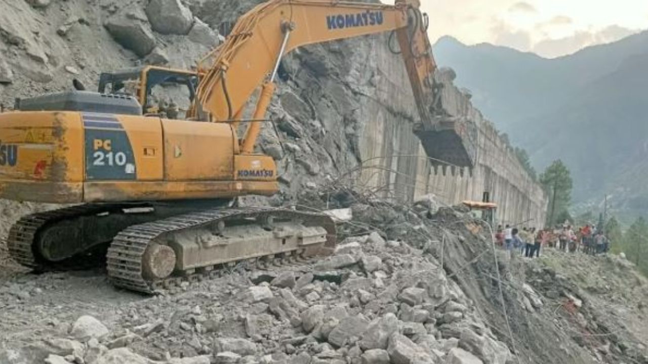 Workers narrowly escape another landslide while clearing the Badrinath highway...#BadrinathHighway #Badrinath #Uttarakhand pic.twitter.com/v3JLI2GqoR