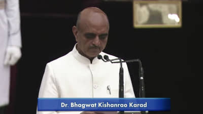 नवी दिल्ली: भाजप नेते डॉ. भागवत कराड यांना केंद्रात अर्थराज्य मंत्रीपद मिळालं आहे. कराड यांना मंत्रिपद मिळणार अशी चर्चाही नव्हती. मात्र काल अचानक त्यांचे नाव मंत्रिपदासाठी पुढे आले आणि कराड चर्चेत आले. आपल्याला मंत्रिपद कसं मिळालं? काल नेमकं काय घडलं यावर स्वत: भागवत कराड यांनीच प्रकाश टाकला आहे. (Bhagwat Karad told how he gets cabinet berth in modi team)