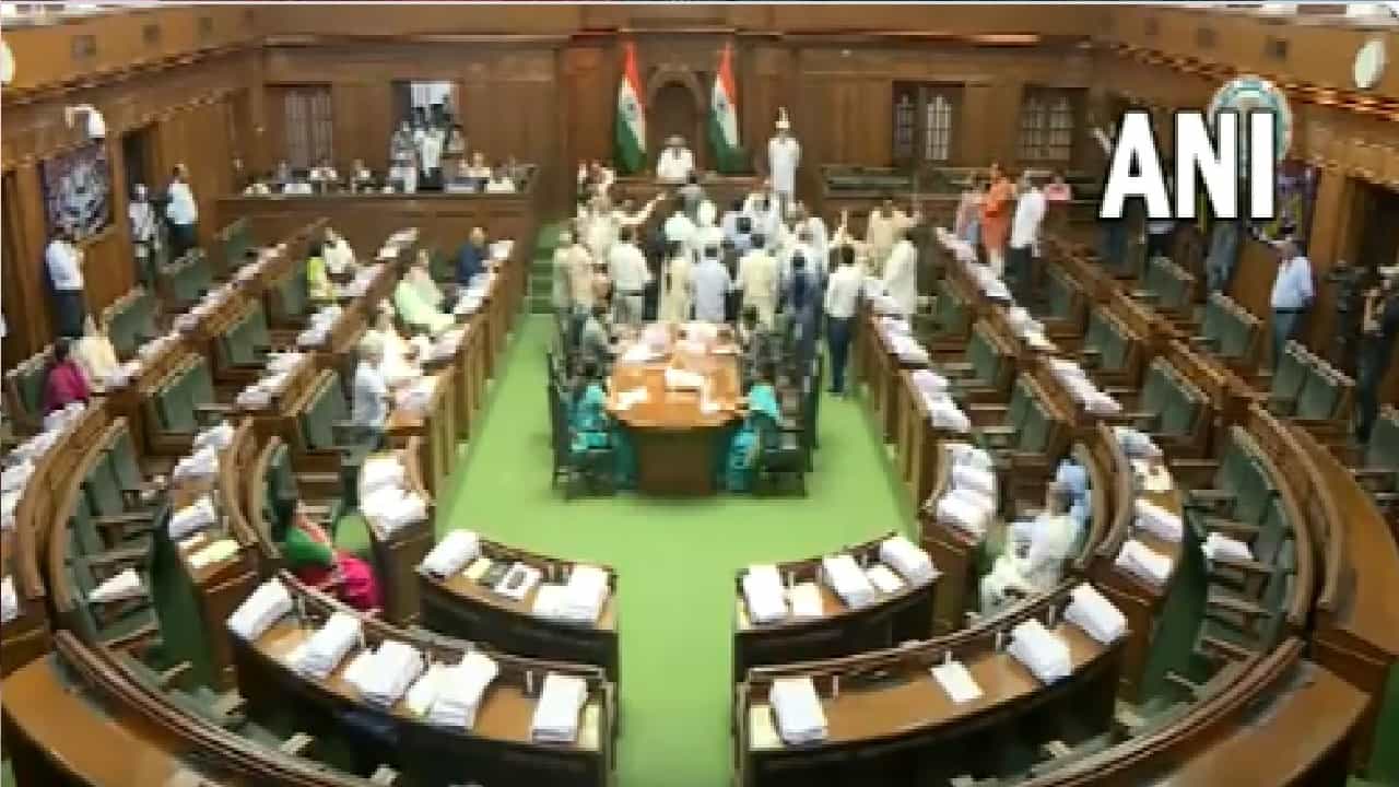 #WATCH | Delhi: BJP MLAs Anil Bajpai, Jitender Mahajan & Ajay Mahawar dismissed from the House for the day for raising slogans while standing on benches; House was adjourned for 15mins.