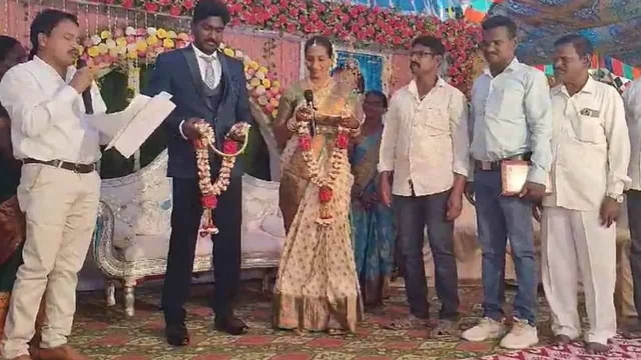 या अनोख्या विवाहाचा एक व्हिडिओ सोशल मीडियावर व्हायरल होत आहे. आंध्र प्रदेशातील पोलीस खात्यात तैनात असलेले बीरवल्ली प्रशांत यांचा विवाह महिला कॉन्स्टेबल नागा ज्योति हिच्याशी झाला. बीरवल्ली प्रशांत हा तरुण आंध्रप्रदेशच्या खम्मम जिल्ह्यातील पेनुबल्ली मंडलच्या टेकुलापल्ली गावचा आहे. या वधू – वराने आपल्या विवाहात कोणताही खर्च न करता किंवा धार्मिक अवडंबर न माजवता साधे पणाने विवाह करण्याचा निर्णय घेतला. परंपरागत लग्न करता हटके विवाह करण्याचे त्यांनी ठरविले होते.