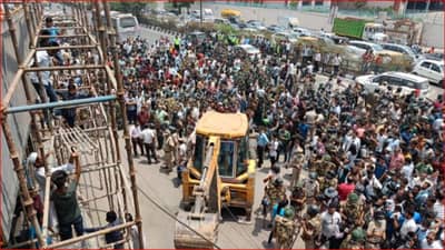 नवी दिल्ली : दिल्लीच्या शाहीन बाग परिसरातील अतिक्रमण हटवण्यास (Bulldozer in Shaheen Bagh) थोड्याचवेळात सुरुवात होणार आहे. मात्र त्यापूर्वी शाहीन बाग (Shaheen Bagh) परिसरात हाय होलटेज ड्रामा पहायला मिळत आहे. शाहीन बागमधील अतिक्रमण हटवण्यास स्थानिकांनी विरोध केला असून, काही स्थानिक नेते आणि नागरिक एमसीडीच्या बुलडोजर (Bulldozer) समोर आडवे झाले आहेत. एवढेच नाही तर हे नागरिक एमसीडी आणि भाजपाच्याविरोधात जोरदार घोषणाबाजी देखील करत आहेत. अतिक्रमण हटवण्यास स्थानिक नागरिकांकडून होणारा वाढता विरोध पहाता घटनास्थळी पोलिसांची अतिरिक्त कुमक देखील मागवण्यात आली आहे. जे नागरिक बुलडोजर समोर आले होते, त्यांना तेथून हटवण्यात आले असून, बुलडोजर अतिक्रमण हटवण्यासाठी पुढे पाठवण्यात आले आहे. एवढेच नव्हे तर ज्या महिलांनी अतिक्रमण हटवण्यासाठी विरोध केला, त्या महिलांना देखील पोलिसांनी ताब्यात घेतले आहे. घटनास्थळी भाजप आणि एमसीडीच्या विरोधात जोरदार घोषणाबाजी सुरू आहे.