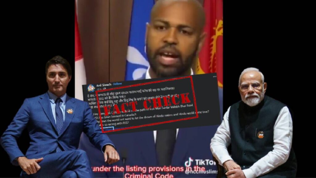 नवी दिल्ली | 22 सप्टेंबर 2023 : खलिस्तान चळवळीला खतपाणी घालणाऱ्या कॅनडा सरकारच्या उलट्याबोंबामुळे दोन्ही देशांचे संबंध ताणल्या गेले आहेत. ते तुटण्यापर्यंत ताणल्या गेले आहे. खलिस्तानी दहशतवादी हरदीप सिंग निज्जर याची हत्या भारत सरकारने घडवून आणल्याचे विश्वसनीय कारणं समोर आल्याचा गंभीर आरोप पंतप्रधान जस्टीन ट्रूडो (PM Justin Trudeau) यांनी केला होता. भारतीय राजदूताची हकालपट्टी केली. त्यानंतर भारताने कॅनडाला त्यापेक्षाही खरमरीत उत्तर दिले. आता भारतातील राष्ट्रीय स्वयंसेवक संघावर कॅनडा सरकारने बंदी (Canda Ban RSS) घातल्याच्या बातम्यांनी वातावरण आणखी तापवलं आहे. सध्या या वृत्तानं भारतासह जगभर धुमाकूळ घातला आहे. खरंच कॅनडा सरकारने आरएसएसवर बंदी घातली आहे का? या व्हायरल मॅसेजमागील सत्य तरी काय?