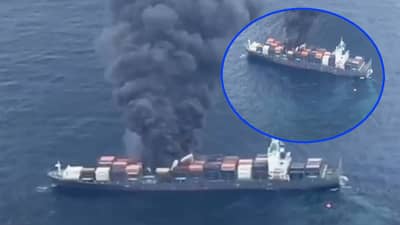 Cargo Ship Fire in sea : कोलंबोहून न्हावा शिवा येथे येणाऱ्या एका मालवाहू जहाजाला मोठी आग लागली आहे. या जहाजातील चार क्रू मेंबर बेपत्ता आहेत. तर 5 क्रू मेंबर जखमी झाल्याचे समोर आले आहे. या मालवाहू जगाजावर एकूण 22 क्रू मेंबर्स होते, अशी माहिती समोर आली आहे. मिळालेल्या माहितीनुसार कोचीपासून सुमारे 315 किमी अंतरावर जहाजाच्या अंडरडेटकमध्ये हा स्फोट झाल आहे.