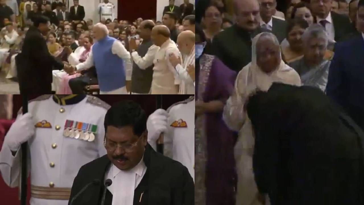 #WATCH | Delhi: CJI BR Gavai greets President Droupadi Murmu, Prime Minister Narendra Modi, Vice President Jagdeep Dhankhar, former President Ram Nath Kovind and other dignitaries at the Rashtrapati Bhavan. He took oath as the 52nd Chief Justice of India.
