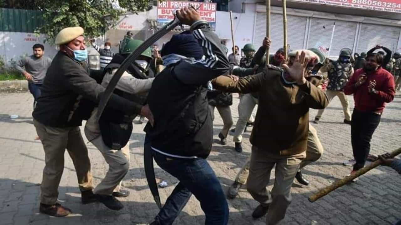 तलवार, लाठी-काठ्यांचा प्रहार, सिंघु बॉर्डरवर घमासान, स्थानिक विरुद्ध आंदोलक, पोलीस अधिकारी जखमी