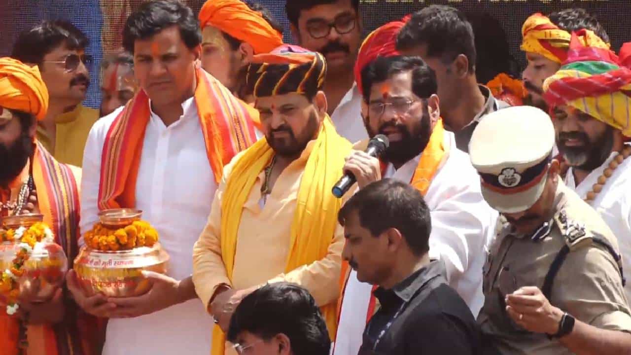 राम मंदिर बांधण्यात महाराष्ट्राने खारीच वाटा उचलला आहे. खारीचा वाटा माहीत आहे ना. जसं राम सेतू बांधण्यात राम भक्तांनी उचलला होता. तसाच. काही लोक आमच्या सरकारला नावे ठेवतात. आमचं रावण राज आहे असं म्हणतात. नवनीत राणा यांनी हनुमान पठन केलं. त्यामुळे नवनीत राणा आणि त्यांचे पती रवी राणा यांना देशद्रोहाचा आरोप ठेवून तुरुंगा टाकलं गेलं. राणा दाम्पत्याला तुरुंगात टाकणारे कोण आहेत? ते राम आहेत की रावण आहेत? तुम्हीच आता ठरवा, असा हल्ला चढवतानाच साधूंची हत्या झाली तेव्हाही ते गप्प बसले होते. आमच्या काळात साधू सुरक्षित राहील, अशी ग्वाहीही त्यांनी दिली. यावेळी शिंदे यांनी ‘जय हिंद, जय महाराष्ट्र, जय उत्तर प्रदेश’चा नाराही दिला.
