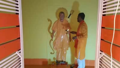 नवी दिल्लीः धर्मनगरी म्हणून ओळखल्या जाणाऱ्या अयोध्येत (Ayodhya) मुख्यमंत्री योगी आदित्यनाथ (Chief Minister Yogi Adityanath) यांचा एक जबरदस्त राजकीय समर्थक आहे. त्याने आपल्या गावात योगी आदित्यनाथांचे एक मंदिरच ((Temple) बनवलं आहे. आणि त्या मंदिरामध्ये त्याने धनुष्यबाण घेतलेली एक मूर्तीची स्थापनाही केली आहे. आपल्या देशात नेत्यांचे समर्थन करण्याचे वेगवेगळे प्रकार आपण पाहिले असतील, पण धर्मनगरी म्हणून ओळखल्या जाणाऱ्या अयोध्येत मुख्यमंत्री योगी आदित्यनाथ यांच्या एका वेगळ्याच समर्थकाचे प्रकरण आता सगळ्यांसमोर आले आहे. प्रभाकर मौर्य यांची ओळख योगी समर्थक म्हणूनच आहे. आणि याच प्रभाकर मौर्य यांनी अयोध्येत योगी आदित्यनाथ यांचे मंदिर उभारले आहे.