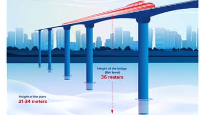 मुंबई-अहमदाबाद बुलेट ट्रेन प्रकल्पाचे काम वेगाने सुरु आहे. या हायस्पीड मार्गावर सध्या अहमदाबादमधील साबरमती नदीवर मोठा पुल बांधला जात आहे. या पुलाची उंची 36 मीटर असून म्हणजेच सुमारे 12 मजली इमारतीची उंची भर इतका (अंदाजे 118 फूट) हा पूल उंच आहे.एकूण 480 मीटर लांबीचा हा पूल, पश्चिम रेल्वेच्या अहमदाबाद–दिल्ली मुख्य मार्गालगत बांधला जात आहे. ज्याची उंची मीटरमध्ये सुमारे 14.8 मीटर इतकी आहे. हा पूल पूर्ण झाल्यानंतर तो एक इंजिनियरिंगचा चमत्कार ठरणार आहे.