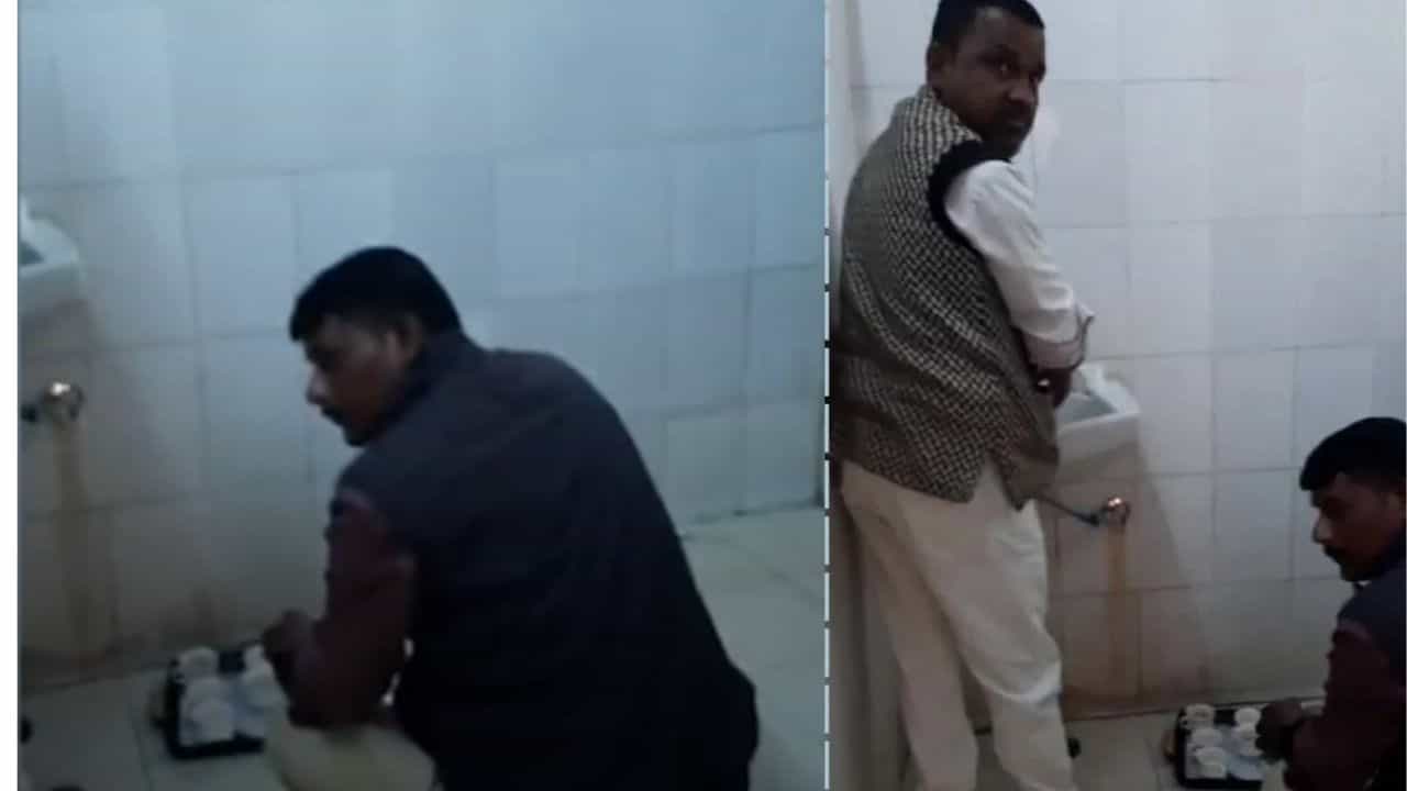टॉयलेटमध्ये कप धुतले अन् त्यातूनच मंत्र्यांसह जिल्हाधिकाऱ्यांना चहा पाजला, Video व्हायरल