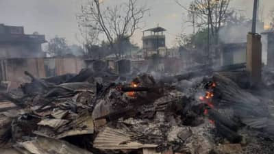 इम्फाळ : मणिपूरमध्ये आज पुन्हा एकदा हिंसाचाराची मोठी घटना घडल्याने समाजकंटकांनी लावलेल्या आगीमुळे मोठं नुकसान झाले आहे. मात्र, या दुर्घटनेत कोणतीही जीवितहानी झाली नसल्याचे सांगण्यात आले आहे. या दुर्घटनेमुळे राज्यात पुन्हा एकदा तणावाची परिस्थिती निर्माण झाली आहे. तर दुसरीकडे इम्फाळच्या चेकोन भागात हिंसाचार भडकवल्याप्रकरणी माजी आमदारासह तीन सुरक्षा कर्मचाऱ्यांनाही ताब्यात घेऊन त्यांची चौकशी करण्यात येत आहे.