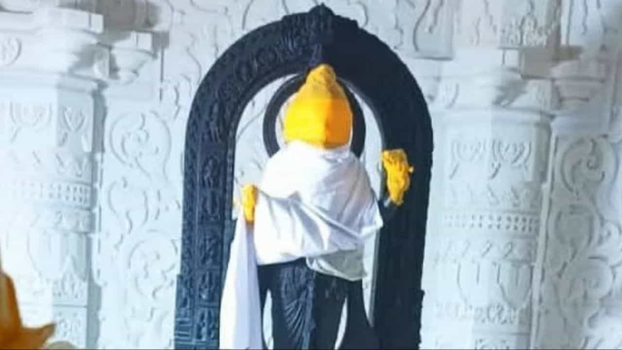 उत्तर प्रदेश: अयोध्या में राम मंदिर के गर्भगृह के अंदर से भगवान राम की मूर्ति की पहली झलक।