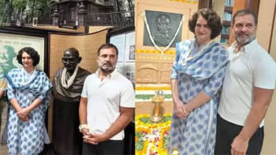 राहुल गांधी आणि प्रियांका गांधी मणिभवनात पोहोचले तेव्हा महात्मा गांधी यांचे नातू तुषार गांधीही उपस्थित होते.