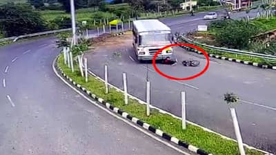 मुंबई : व्हिडीओ पाहिल्यानंतर कुणालाही वाटेल की या अपघातातला दुचाकीस्वार नक्कीच मृत पावला असेल, पण अपघातातला दुचाकीस्वार आश्चर्यकारित्या बचावला आहे. गुजरातमधील दाहोद इथून एक हृदयद्रावक व्हिडिओ समोर आला आहे. हा व्हिडिओ एका दुचाकीस्वाराचा आहे, जो अपघातात थोडक्यात बचावतो. काही तासांत या व्हिडीओ हजारो व्ह्यूज मिळाले आहेत.