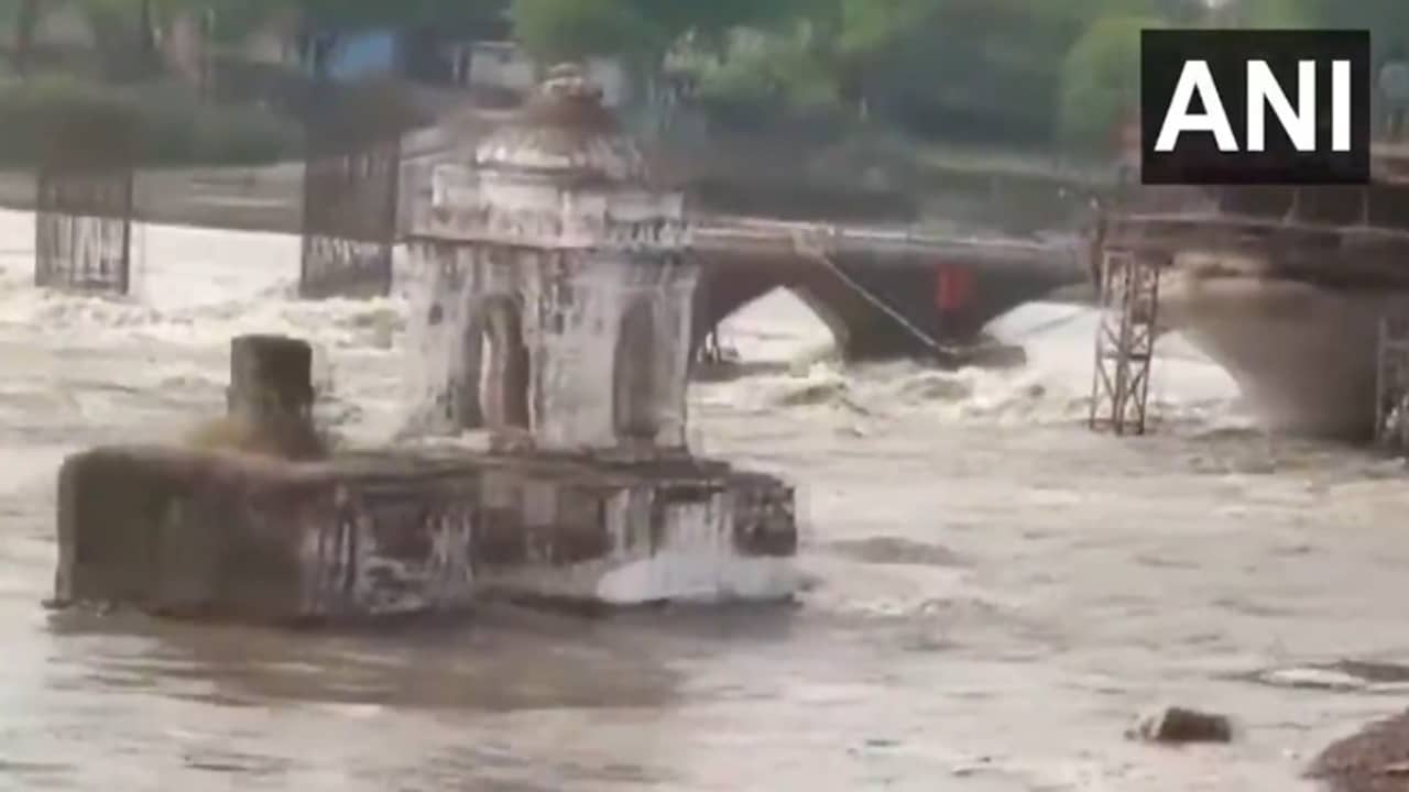 (Heavy rain caused floods in Sunar river in sagar rescue the trapped labourer on the Piller)