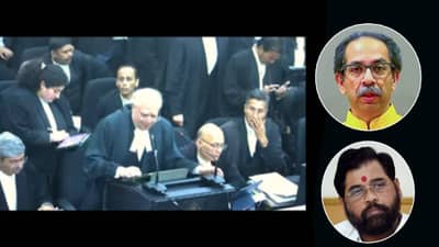 नवी दिल्ली : राज्यातील सत्तासंघर्षावर जोरदार युक्तिवाद सुरू आहे. कपिल सिब्बल यांनी ठाकरे गटाची बाजू अत्यंत जोरदारपणे लावून धरली आहे. सिब्बल यांनी आजच्या युक्तिवादात प्रतोद, गटनेतेपद आणि शिवसेना नेतेपदाची नियुक्ती यासह पक्षप्रमुखांचे अधिकार यावर अधिक जोर दिला. तसेच काही जुन्या केसेसचे दाखलेही दिले. या शिवाय पक्षाचं कामकाज कसं चालतं याकडेही सर्वोच्च न्यायालयाचं लक्ष वेधलं. यावेळी सिब्बल यांनी गुवाहाटीच्या हॉटेलात बसून शिंदे गट आमदार अपात्रतेचा निर्णय कसा घेऊ शकतो? असा सवालच कपिल सिब्बल यांनी केला.