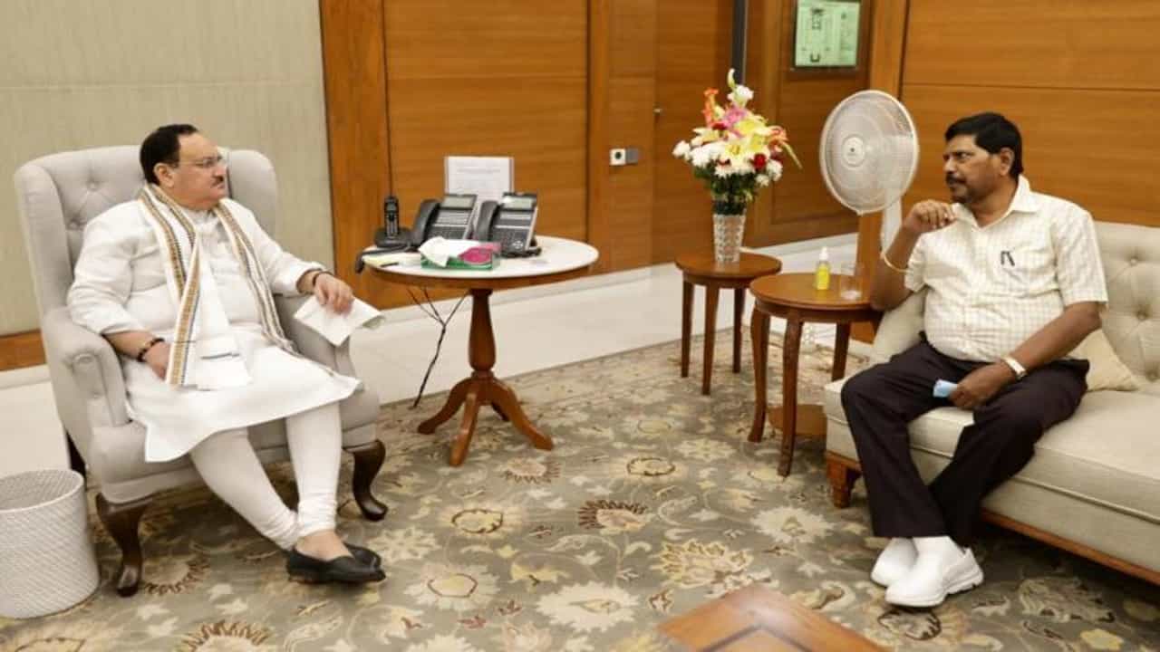 Ramdas Athawale meet JP Nadda | उत्तर प्रदेशात मायावतींच्या बहुजन समाज पक्षाला शह द्यायचा असेल तर भाजपने रिपब्लिकन पक्षाला सोबत घेऊन युती केली पाहिजे.