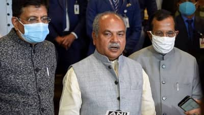 आज दुपारी 2 वाजता ही बैठक सुरू झाली. या बैठकीत शेतकऱ्यांच्या प्रतिनिधींनी तिन्ही कृषी कायदे मागे घेण्याची मागणी लावून धरली. मात्र, केंद्र सरकारने या मागण्या धुडकावून लावल्याचं सूत्रांनी सांगितलं. या बैठकीनंतर कृषी मंत्री नरेंद्र सिंह तोमर यांनी मीडियाशी संवाद साधला. यावेळी त्यांनी तिन्ही कृषी कायदे मागे घेण्याच्या व्यतिरिक्त शेतकरी संघटनांनी दुसरा पर्याय द्यावा. त्यावर आम्ही चर्चा करायला तयार आहोत. पण तिन्ही कायदे रद्द करण्यात येणार नाही, असं स्पष्ट केलं.