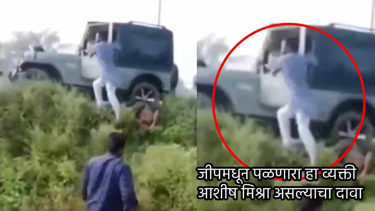 सध्या व्हायरल होत असलेल्या व्हिडीओमध्ये, शेतकऱ्यांना चिरडल्यानंतर ही जीप पुढं जाऊन थांबते, त्यातून लोक बाहेर पडतात. तेवढ्यात खादीचा कुर्ता घातलेला व्यक्तीही बाहेर पडतो, आणि पळू लगतो असं दिसत आहे. हा खादीचा कुर्ता घातलेला व्यक्ती केंद्रीय मंत्री अजय मिश्रांचा मुलगा आशीष मिश्राच असल्याचा दावा शेतकऱ्यांनी केला आहे.