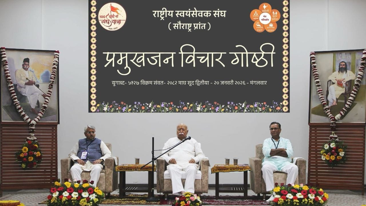राजकोट, 20 जानेवारी : राष्ट्रीय स्वयंसेवक संघाचे (आरएसएस) सरसंघचालक डॉ. मोहन भागवत यांनी आज संघाच्या शताब्दी वर्षानिमित्त राजकोट येथील एका जाहीर सभेत सौराष्ट्र आणि कच्छमधील नागरिकांशी संवाद साधला. सेवा भारती भवन येथील आयोजित कार्यक्रमात सरसंघचालकांनी सांगितले की, ‘राष्ट्रीय हितावर कोणाचीही मक्तेदारी असू शकत नाही. ही आपली सामूहिक जबाबदारी आहे आणि संघ अशा कामात गुंतलेल्या सर्वांच्या पाठीशी उभा आहे.’