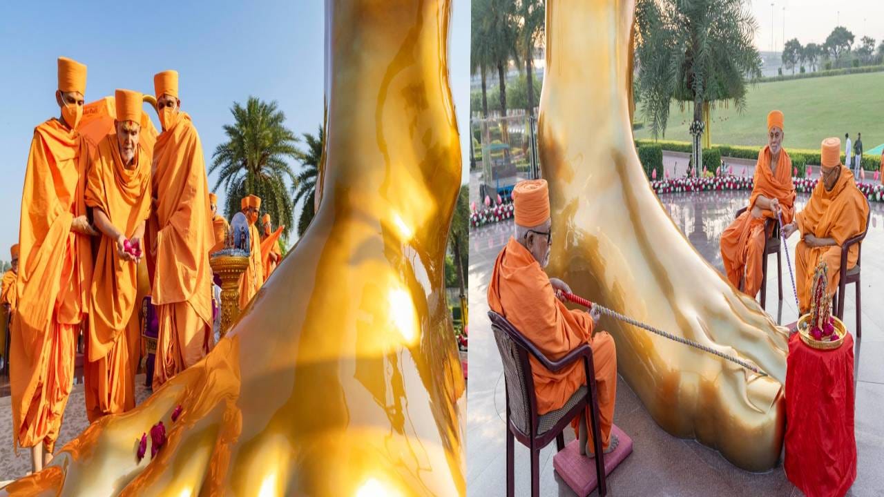 आज पहाटेच भक्तांनी अक्षरधाम मंदिर परिसर फुलून गेला होता. पुरुष, महिला आणि मुलं पारंपारिक वेष परिधान करून आले होते. या पुतळ्याच्या प्रतिष्ठापनेवेओळी श्रद्धा आणि उत्साहाने सर्वच उपस्थित झाले होते. संपूर्ण परिसरात भजन, वैदिक मंत्रोच्चार आणि सामूहिक प्रार्थना सुरू होत्या. त्यामुळे संपूर्ण वातावरण भारून गेलं होतं.