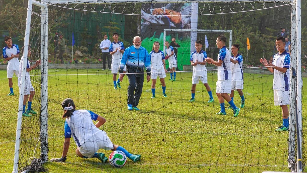 मित्रांसोबत पीएम मोदींची धमाल! गंगटोकमध्ये खेळले फुटबॉल, केला गोल, एका उनाड दिवसांच्या फोटोंची सोशल मीडियावर क्रेझ