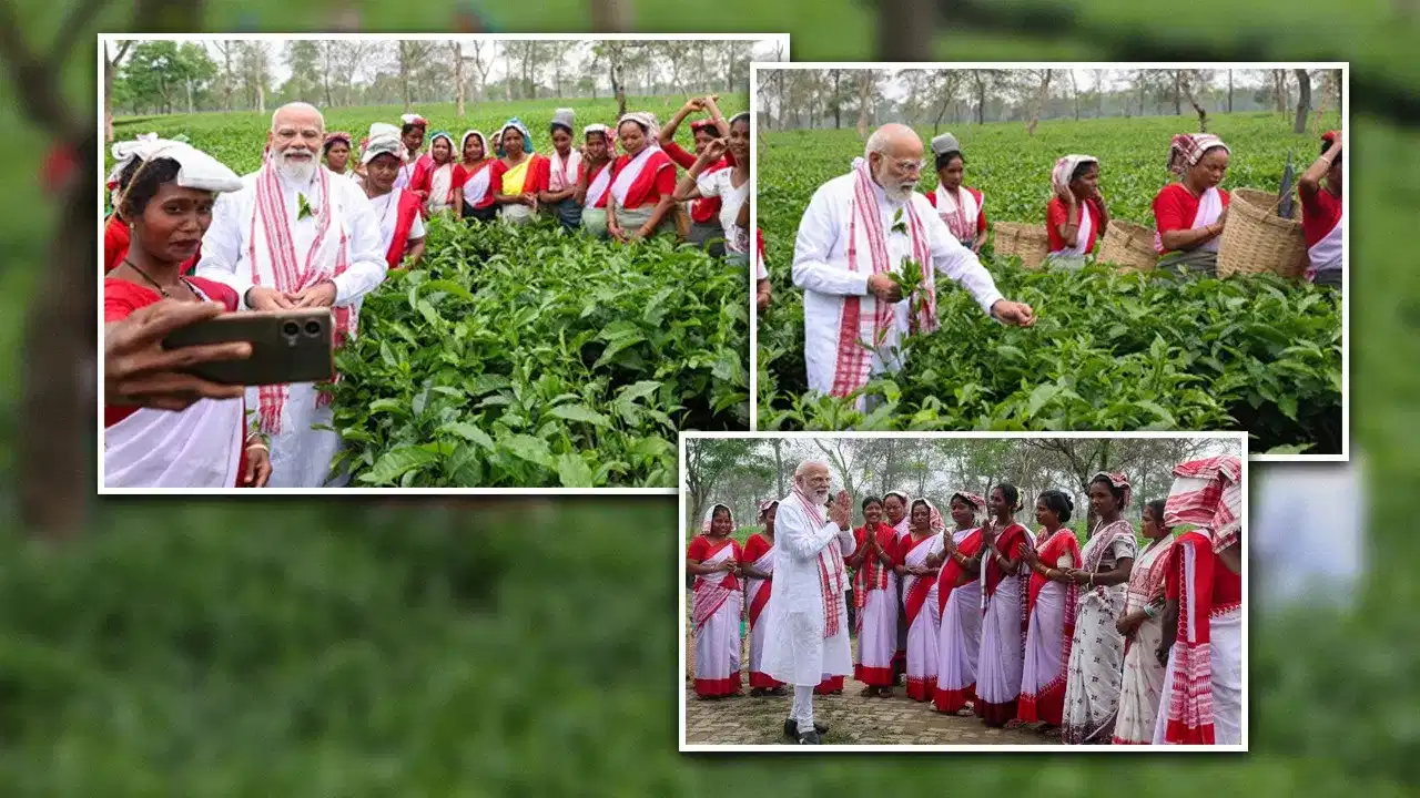 आसाममधील विधानसभा निवडणुकीच्या प्रचाराला वेग आला आहे. या प्रचारासाठी पंतप्रधान नरेंद्र मोदी आसामला पोहोचले आहेत. आज प्रचारासाठी रवाना पंतप्रधानांनी दिवसाची सुरुवात एका चहाच्या बागेला भेट देऊन केली. या वेळी त्यांनी चहाच्या बागेत काम करणाऱ्या महिला कामगारांसोबत चहाची पाने तोडली, त्यांच्याशी संवाद साधला, सेल्फी काढला आणि आसामच्या चहाच्या जागतिक महत्त्वावर प्रकाश टाकला. याबाबत सविस्तर माहिती जाणून घेऊयात.