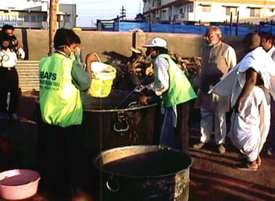 भूकंपाच्या ढिगार्यातून बाहेर काढलेल्या जखमींशी संवाद साधत मोदी त्यांच्या पाठीशी आपण आहोत असे आश्वासन देताना छायाचित्रात दिसत आहेत. मुख्यमंत्री पदाची खूर्ची सोडून मोदी यांनी भूकंपग्रस्तांसाठीच्या भोजन व्यवस्थेची तसेच अन्न शिजवण्याच्या कामावर कशी देखरेख केली हे या छायाचित्रात दिसत आहे.
