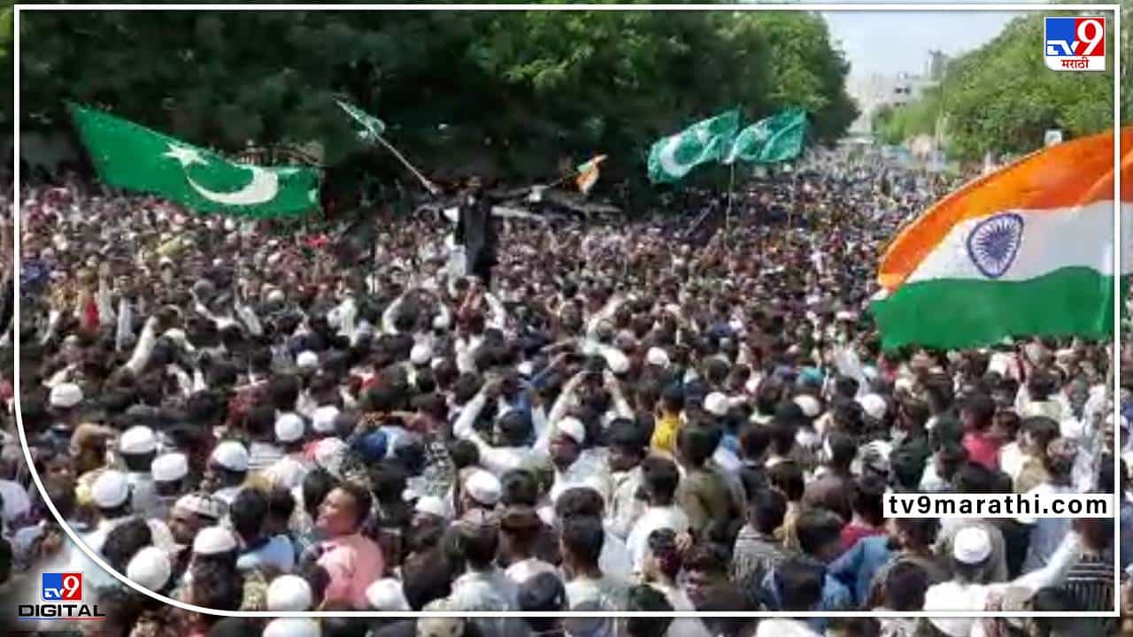 #WATCH | Maharashtra: A large number of people carry out a protest march in Solapur against the controversial remarks by suspended BJP leader Nupur Sharma. pic.twitter.com/dVpwrq0r3G