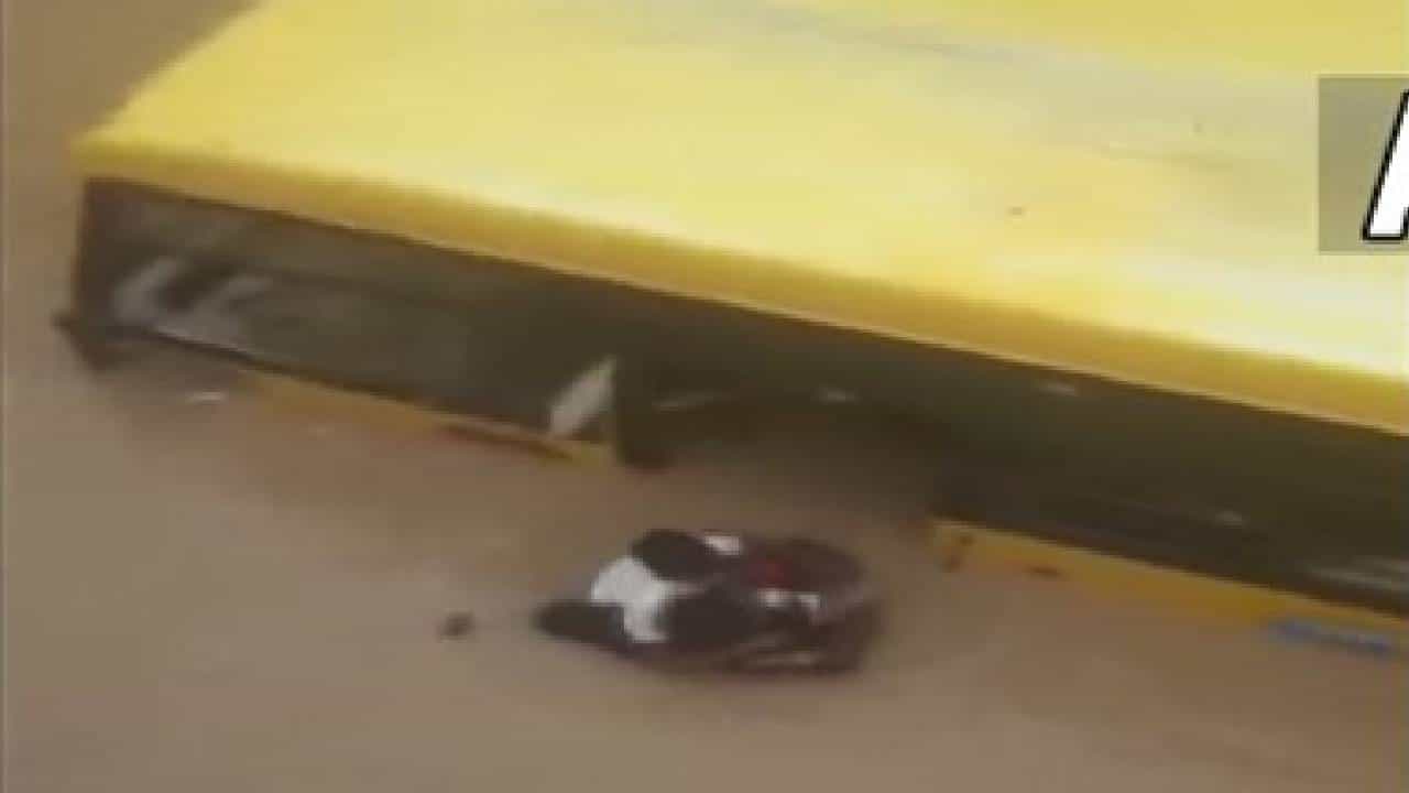 तेलंगणातील महबुबनगरात शुक्रवारी मोठी दुर्घटना टळली. स्कूल बस पाण्यात बुडाली होती. ही बस पाण्यात फसली असताना सुमारे 30 विद्यार्थी या बसमध्ये फसले होते. बसमधून बाहेर कसं पडायचं असा प्रश्न त्यांच्यासमोर होता. कारण चारही बाजूला सुमारे तीन-चार फूट पाणी होते. या पाण्यात विद्यार्थी बुडण्याची शक्यता होती. अशावेळी शेजारी धाऊन आले. त्यांनी एका-एका मुलाला बसमधून व पुरातून बाहेर काढले. त्यामुळं या विद्यार्थ्यांचे प्राण वाचले. या सुरक्षा मोहिमेचा व्हिडीओ समोर आलाय. पोलीस उपायुक्तांनी सांगितलं की, ही घटना सकाळी नऊ वाजताच्या सुमाराची आहे. 30 विद्यार्थी घेऊन जाणारी बस मानचनपल्ली व सिगूर गड्डा टांडा पुलाच्या खाली फसली.