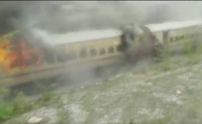 #WATCH तेलंगाना: फलकनुमा एक्सप्रेस के 3 डिब्बों में आग लग गई, जिसके बाद इसे रोक दिया गया। सभी यात्री ट्रेन से उतर गए हैं किसी के हताहत होने की सूचना नहीं है। pic.twitter.com/63iqDz9HdW