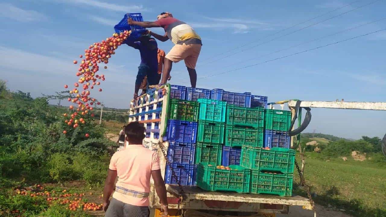 आंध्रप्रदेशातील कुरनूल जिल्ह्यातील पट्टीकोंडा येथील बाजारात एक किलो टोमॅटोची किंमत केवळ 2 ते 3 रुपये मिळाली. 100 किलो टोमॅटो केवळ 200 रुपयांत मिळाल्याने शेतकऱ्यांच्या डोळ्यात पाणी आले. टोमॅटोचे उत्पादन वाढले आणि बाजारात मोठ्या प्रमाणात आवक वाढली तर खरेदीदारांनी पाठ फिरवली. त्यामुळे टोमॅटोचे भाव कोसळले. शेतकऱ्यांना टोमॅटोसाठी केलेला खर्चही काढता आला नाही. टोमॅटो रस्त्यावर फेकून शेतकऱ्यांनी संताप व्यक्त केला. यापूर्वी दक्षिणेतील अनेक शेतकऱ्यांना टोमॅटोने अवघ्या एका महिन्यातच लक्षाधीश, कोट्याधीश केले.