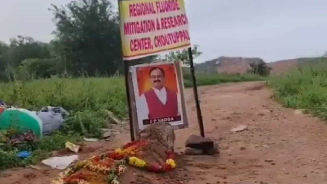 तेलंगणा राष्ट्र समितीच्या (टीआरएस) नेत्यांनी फ्लोराईडग्रस्तांना वैद्यकीय सुविधा मिळाली नाही. त्यामुळे भाजपच्या अध्यक्षांवर निशाणा साधत त्यांची प्रतिकात्मक कबर खोदण्यात आली आहे.