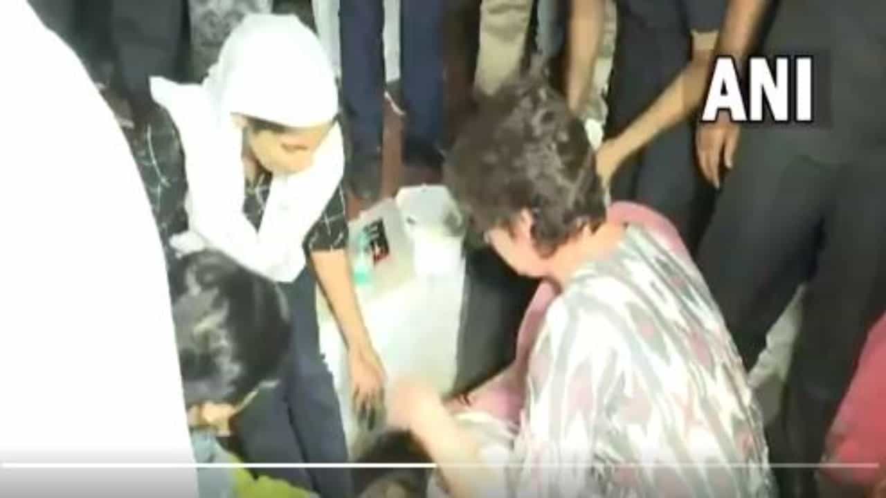 Priyanka Gandhi helps a young girl injured in an accident in Agra