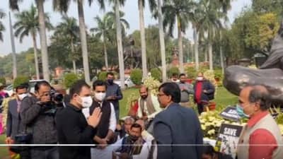 पावसाळी अधिवेशनातील गोंधळावरुन लोकसभेतील 12 खासदारांचं निलंबन करण्यात आलं आहे. त्यात शिवसेना, काँग्रेस, सीपीएम, तृणमूल काँग्रेस आणि सीपीआयच्या खासदारांचा समावेश आहे. हे सर्व खासदार निलंबनाच्या कारवाईविरोधात संसद परिसरातील महात्मा गांधी यांच्या पुतळ्यासमोर आंदोलनला बसलेले आहेत. या आंदोलक खासदारांच्या भेटीसाठी आणि त्यांना समर्थन देण्यासाठी विविध पक्षाचे बडे नेते इथे येत आहेत. त्यानुसार राहुल गांधीही याठिकाणी आले. त्यावेळी तिथे उपस्थित असलेल्या संजय राऊत यांनी ‘आप आये बहार आयी’ म्हणत त्यांचं स्वागत केलं. यावेळी राहुल गांधी यांनीही त्यांच्या या स्वागताला दाद दिली. त्यांचा हा व्हिडीओ आता सोशल मीडियावर चांगलाच व्हायरल होत आहे.