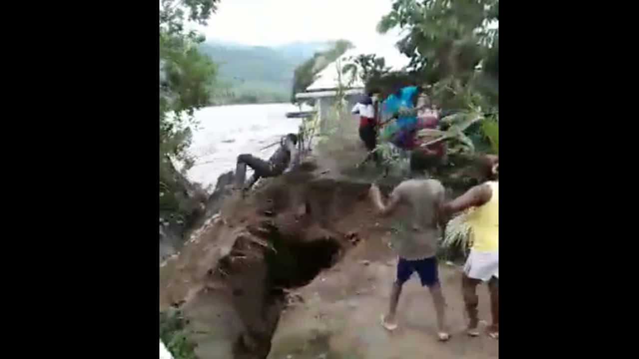 या व्हिडीओत काही तरुण नदीच्या किनारी नारळाच्या झाडाजवळ जमा झालेले दिसत आहेत. दोन एक तरुण नारळाच्या झाडावर चढला असून तो नारळ काढताना दिसत आहे. झाडाच्या बाजूलाच भली मोठी नदी आहे. हा मुलगा झाडावर चढत असतानाच अचानक पाण्याचा प्रचंड लोट आला आणि जमीन खचली आणि झाडासह जमिनीचा काही भाग पाण्यात गेला. त्यामुळे झाडावर चढलेल्या तरुणाने झाडावरून उडी मारून जीव वाचवला. पण झाडाखाली उभा असलेला तरुण मात्र उलटासुलटा होत पाण्यात ढकलला गेला. काही कळायच्या आत हा तरुण आणि झाड पाण्यात एकरुप झाले. पाण्याचा प्रवाह अक्राळविक्राळ रुप धारण करून वाहत होता आणि जमलेले तरुण मात्र ओरडत होते.