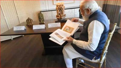 पंतप्रधान कार्यालयाच्या माहितीनुसार, यापैकी बहुतांश वस्तू 11 व्या ते 14 व्या शतकातील आहेत. पंतप्रधान मोदी प्राचीन कलाकृती न्याहाळताना.